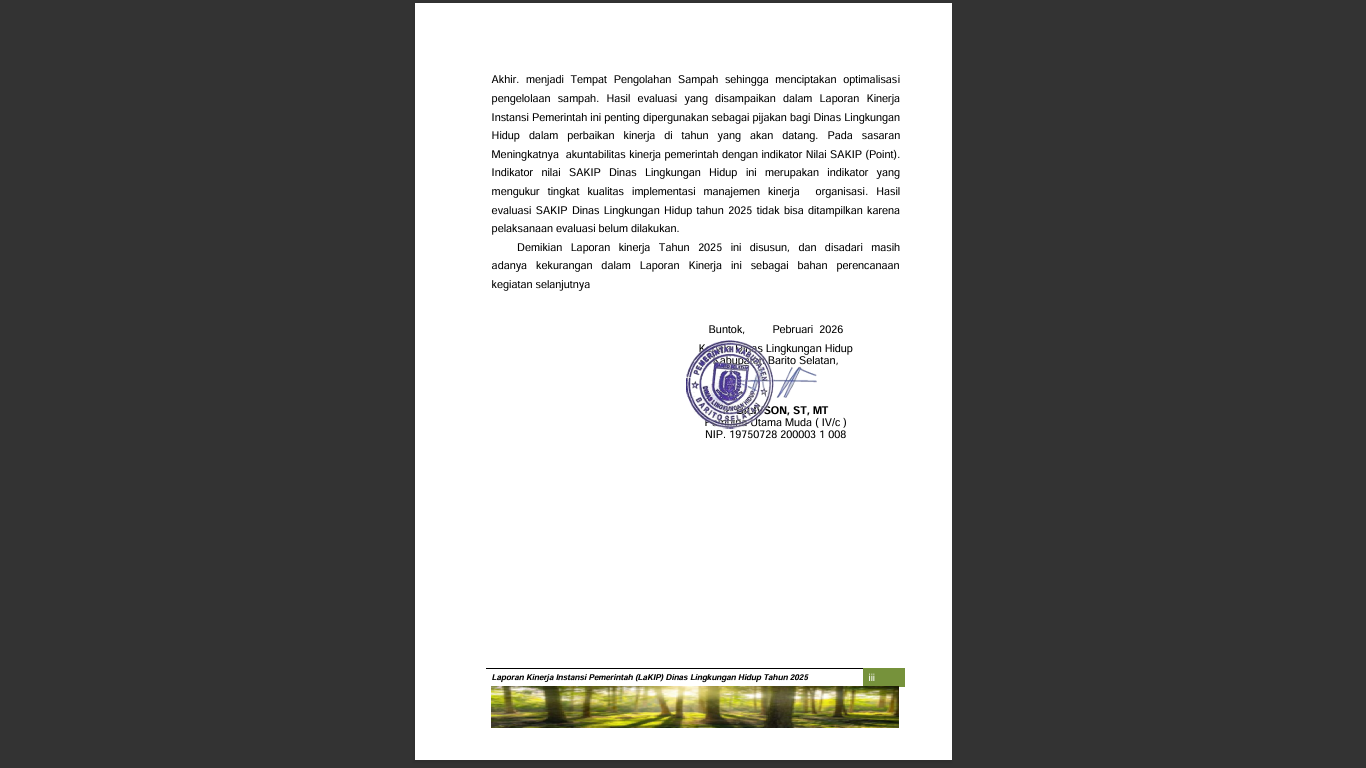 Laporan Akuntabilitas Kinerja Pemerintah Tahun 2025 Dinas Lingkunga Hidup Kab. Barito Selatan